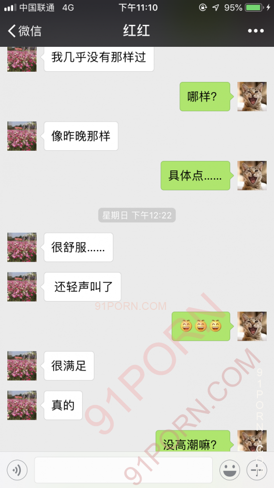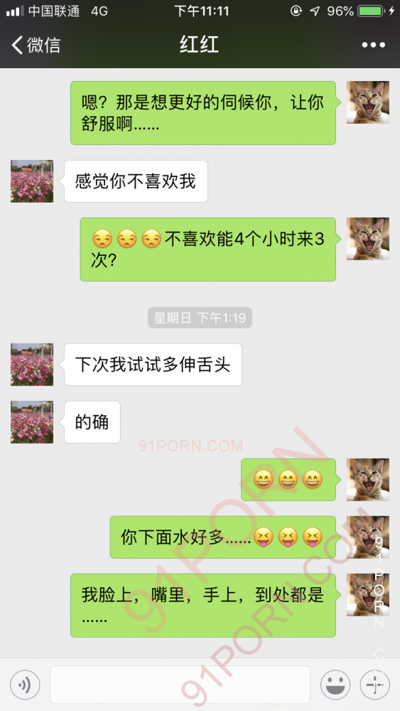 和红妹在探探上相识于上周,看得出她是老公长期不在,作为家庭主妇,积怨已深。于是有了我和她的这段性福时光。从害怕到试探再到接受最后到无法自拔,从第一次见面吃饭看电影到第二次推倒4小时3次,从精油推背spa放松到后来主动索吻……具体不予详谈,截图为证。